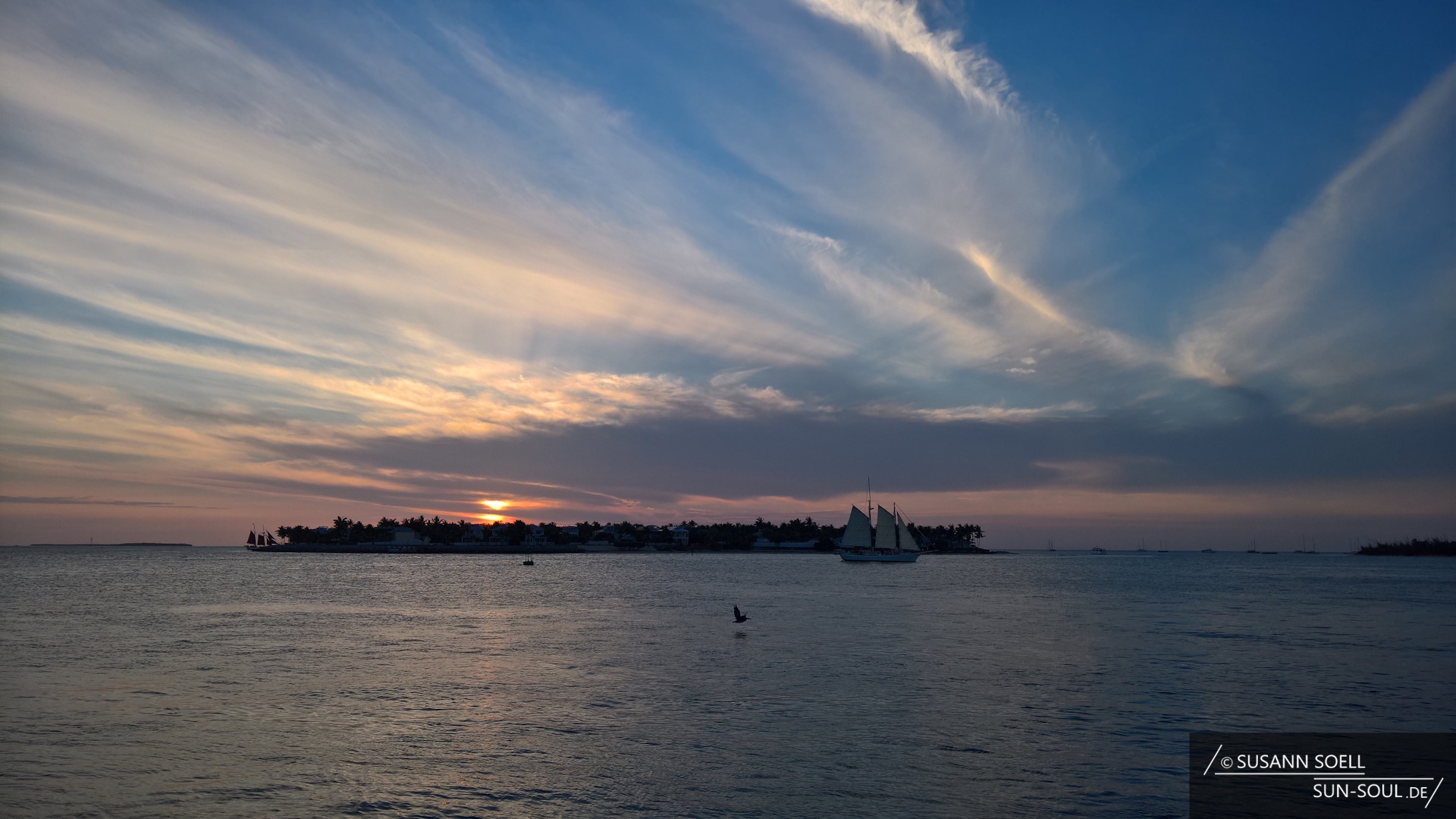 Am Ende der Duval Street biegen wir nach links zum Mallory Square ab. Während Händler ihre Waren feilbieten, Straßenkünstler ihr Können zur Schau stellen und Handleser in die Zukunft schauen, ist er vor allem Treffpunkt für ein allabendliches Ritual: Seit den 1960er-Jahren versammeln sich hier die Menschen, um die im Golf von Mexiko untergehende Sonne zu bejubeln und zu beklatschen. Egal, wie viele Menschen tatsächlich lauthals jubeln, der Blick ist traumhaft![10] Und macht deutlich, warum die Kubaner im 19. Jahrhundert die Insel „stella maris“ („Insel des Meeres“) nannten.[11]