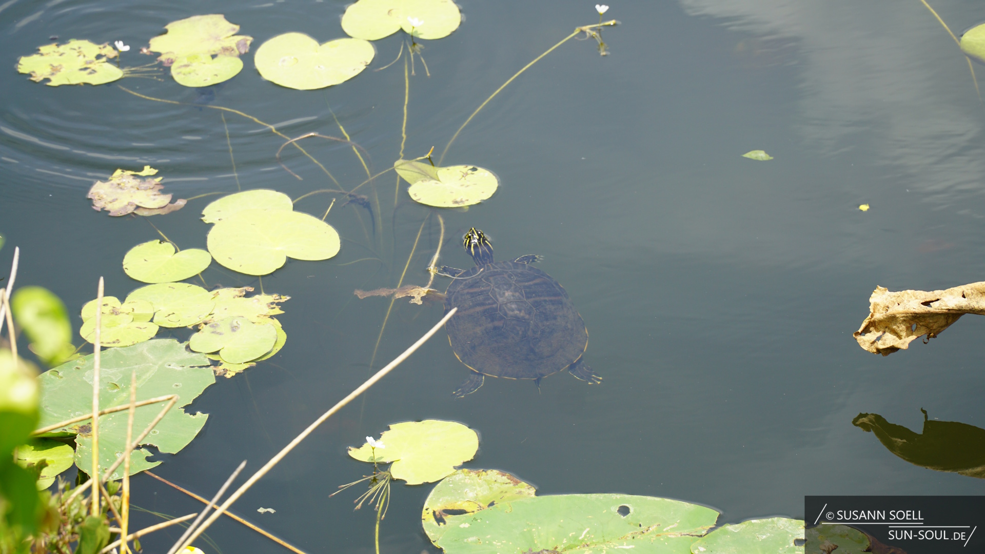 Den ersten Stopp legen wir am Royal Palm Visitor Center ein. Dort gibt es zwei Trails: Zum einen den 800 Meter langen Anhinga Trail, der auf Holzplanken durch Riedgras und an Alligatoren, Schildkröten und Kranichen entlangführt.