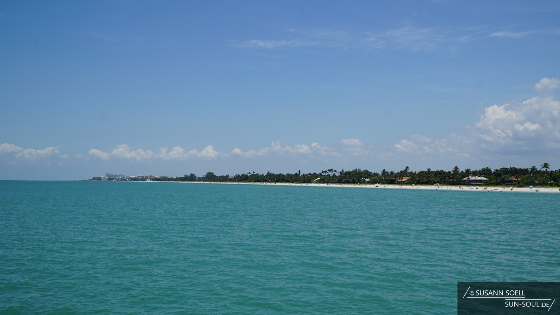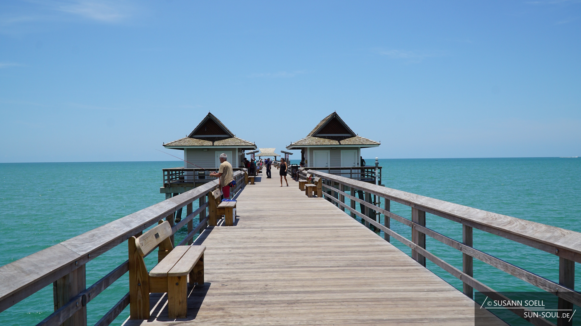 Mit dem Auto fahren wir einmal quer durch die Stadt zum Strand, genauer gesagt zum berühmten Naples Pier. Die Parkplatzsituation ist dort nicht ganz einfach und unter Umständen kostspielig. Aber es lohnt sich! Der Naples Pier reicht über 300 Meter in den Golf von Mexiko und ist ein beliebter Treffpunkt für Angler, Badegäste, Naturliebhaber und abends für Fans eines traumhaften Sonnenuntergangs.