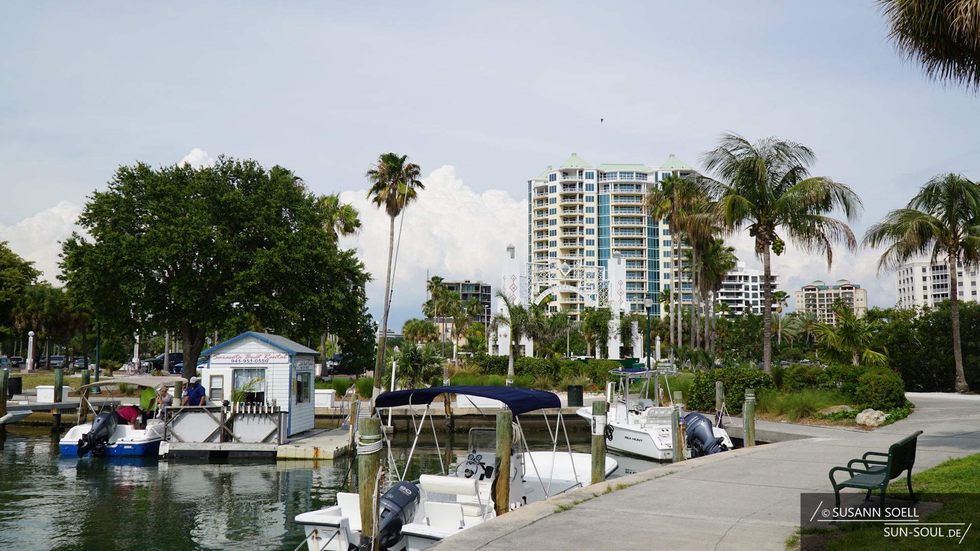 Wir genießen noch ein bisschen das Treiben am sowie um den Strandabschnitt, bevor wir unsere Fahrt fortsetzen. Wir steuern als nächstes den Bayfront Park in Sarasota an. Einen kostenfreien Parkplatz findet man ganz in der Nähe.