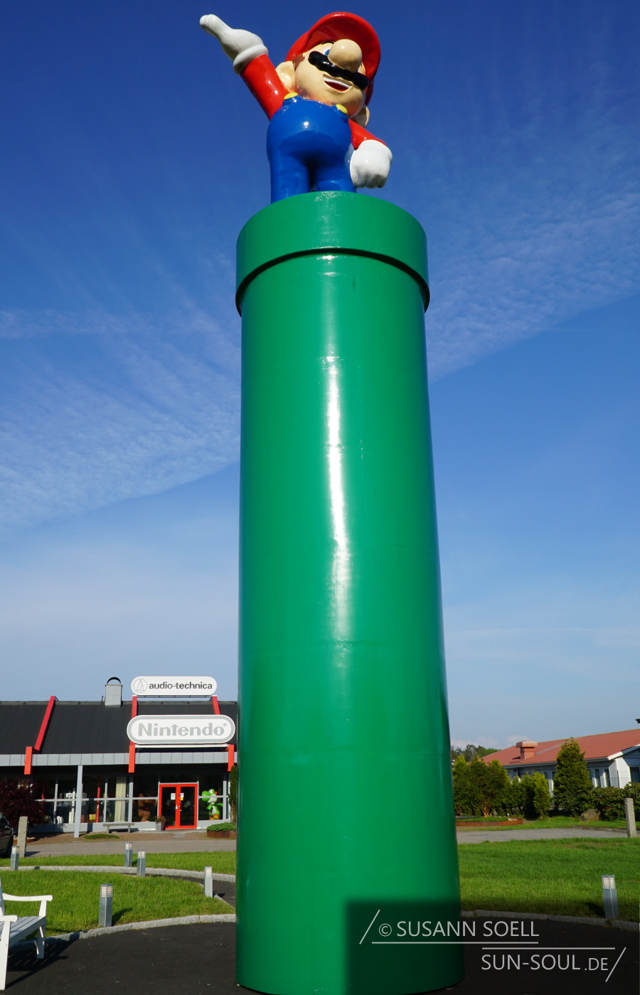 Wie wir später nachlesen, gibt es in der Geschäftsstelle sogar ein kleines Museum. Da wir jedoch außerhalb der Öffnungszeiten da gewesen sind, blieb uns nur der Blick durch das Schaufenster auf einen riesigen, grünen Yoshi. Nichtsdestotrotz ein toller und spontaner Mini-Ausflug, der nur durch Zufall unseren Weg gekreuzt hat.
