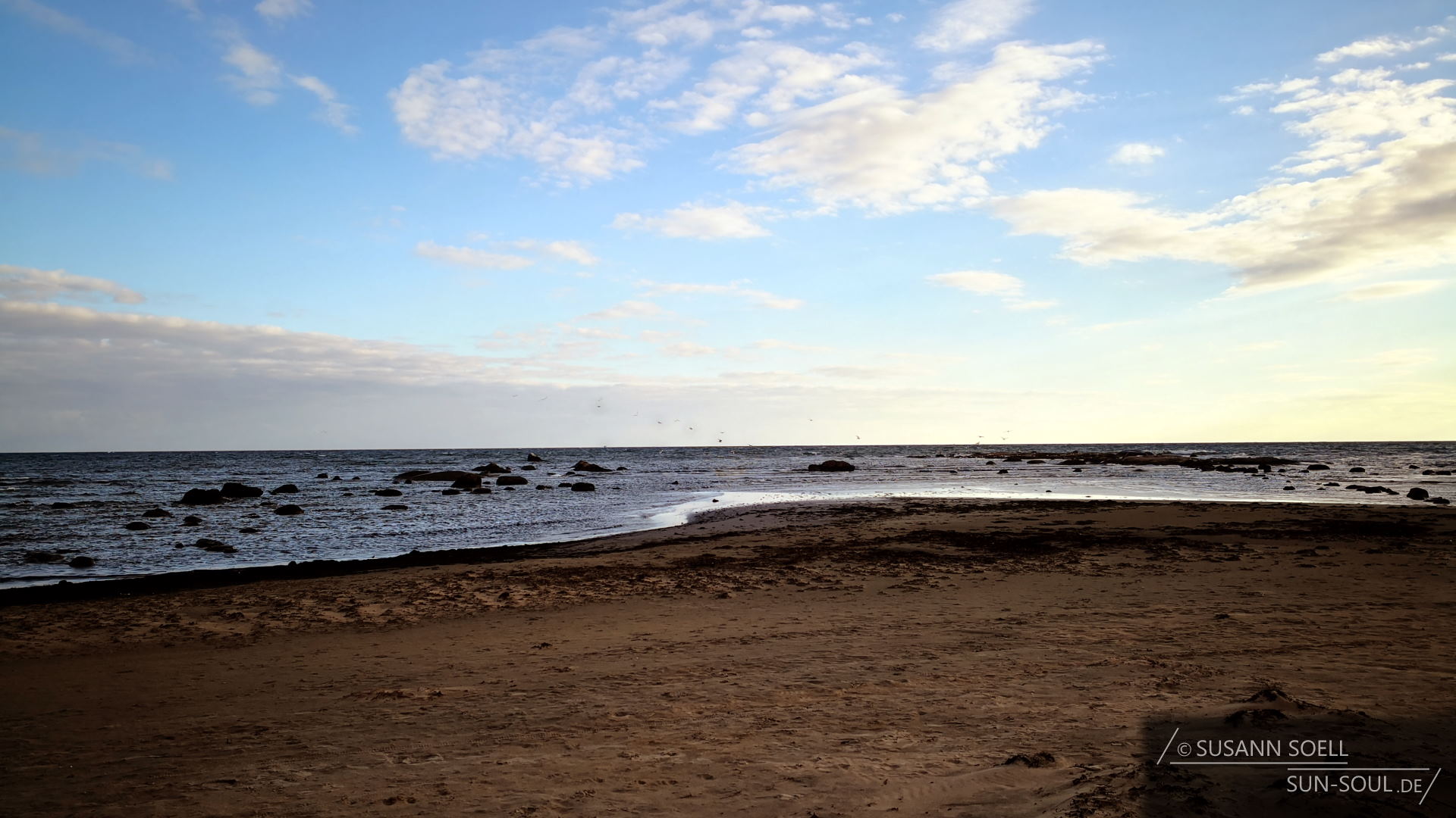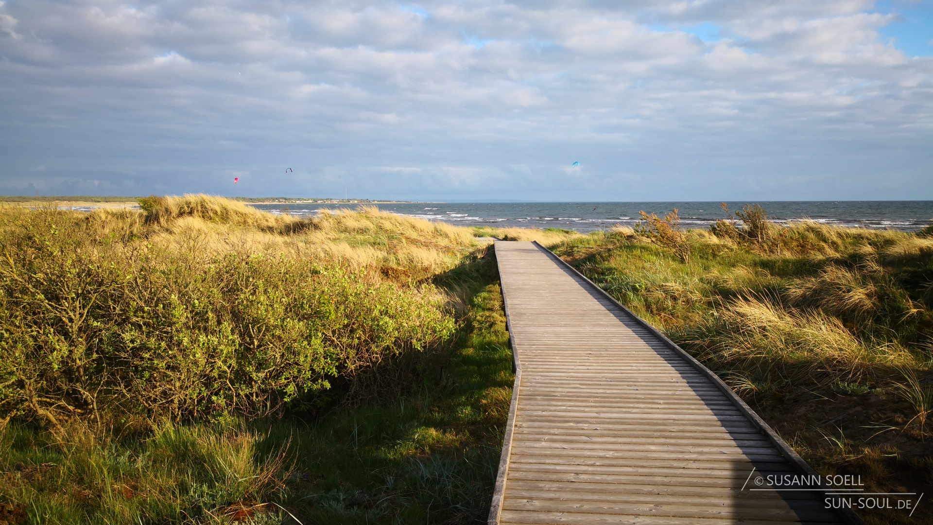 Knapp zwei Kilometer entfernt soll ein kleiner, flacher Sandstrand sein. Der Weg dorthin führt zwischen einer Wohnsiedlung und an einem Eiskiosk vorbei. Bis man direkt auf den Weg mit Holzplanken stößt. Viel Zeit bleibt uns leider nicht mehr, da die Sonne bereits langsam hinter den Dünen verschwindet. Doch es ist traumhaft. Eine steife Brise pfeift uns um die Nase, die Möwen sitzen auf Futter wartend im Sand und die Wellen brechen an den kleinen Felsen. Es fühlt sich an wie an der Ostsee. Ein wunderbarer Ausklang eines eigentlich verregneten Maitages.